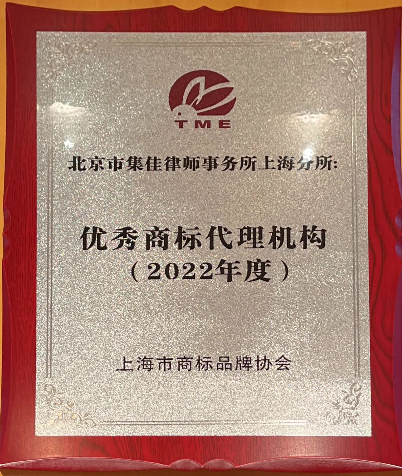 集佳上海分所被评为2022年度“上海市优秀商标代理机构”