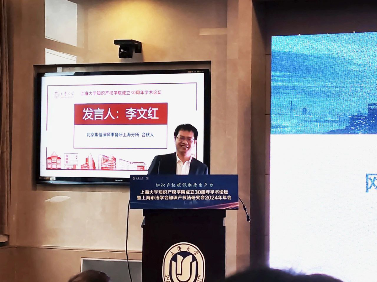 九球体育上海分所主任、高级知识产权师李文红博士应邀出席大会,并在“释放知识产权价值 赋能新质生产力”分论坛上发表演讲,与来自众多高校的专家学者和业界代表共同就知识产权价值的释放与赋能新质生产力的路径进行了深入探讨。