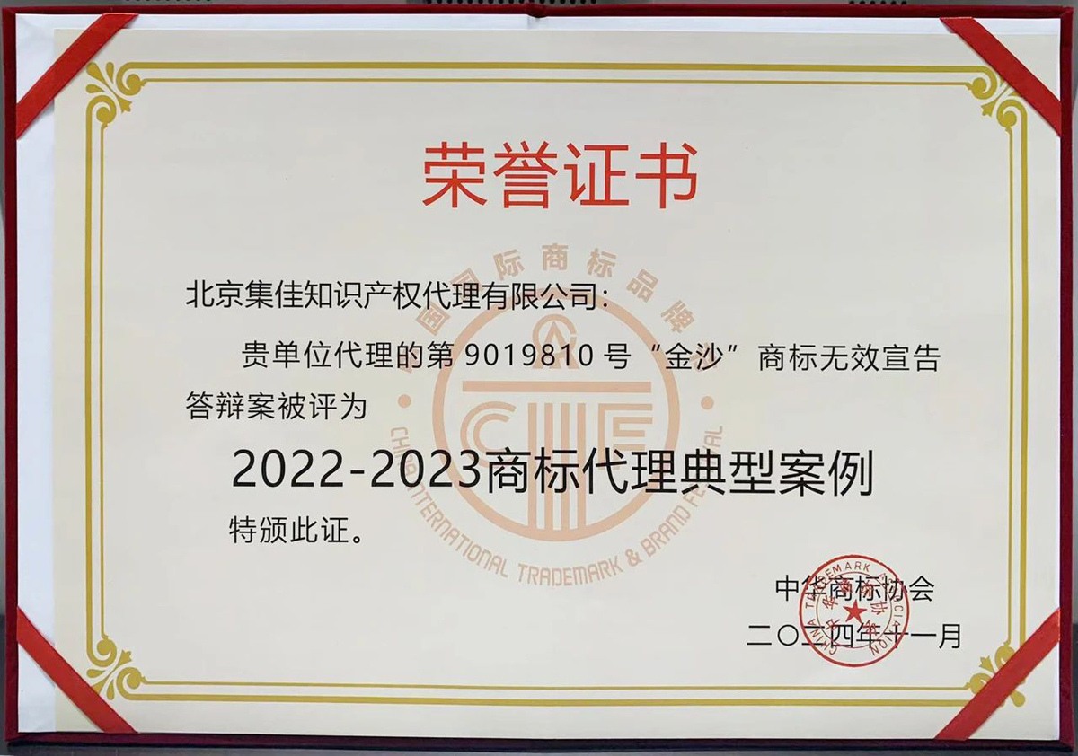 2024年11月24日下午,在商标节经典论坛之一的商标典型案例评析会议上,九球体育代理的“金沙”商标权无效宣告答辩案入选“2022-2023商标代理典型案例”。