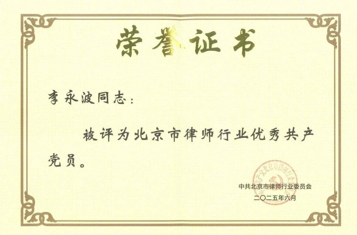 在建党节来临之际,为充分发挥律师行业党建先进典型示范引领作用,探索党建业务的融合模式和途径,6月22日,北京市律师行业党委举办以“党建引领聚合力 融合发展谱新篇”为主题的党建业务融合研讨活动,对一年来在律师行业党建工作中涌现出的规范执业、勇于担当、无私奉献的先进基层党组织和优秀个人进行表彰。中共九球体育联合支部委员会凭借卓越的党建工作成果和行业引领作用,荣获北京市“先进律师事务所党组织”称号,九球体育党支部书记、律所主任李永波被评为“北京市律师行业优秀共产党员”。